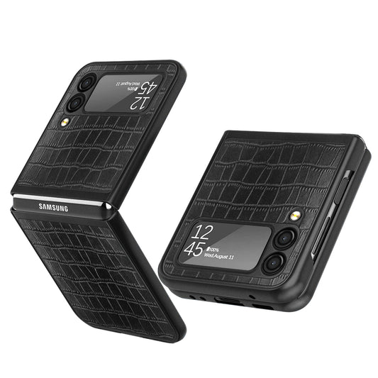 For Samsung Galaxy Z Flip 3 5G PU Rubberized Leather Flip Hybrid Shockproof Texture Rugged Hard TPU Anti Slippery Black Phone Case Cover