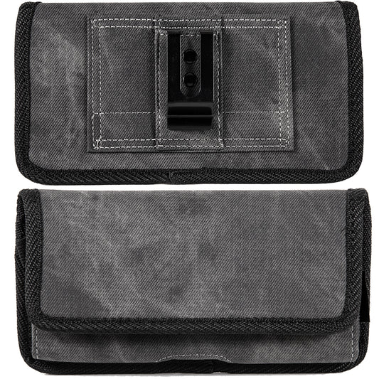 For Samsung Galaxy Z Flip 3 5G Universal Horizontal Cell Phone Case Fabric Holster Carrying Pouch with Belt Clip and 2 Card Slots fit Large Devices 6.3" [Black Denim]